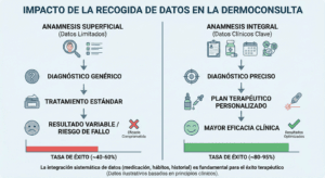 La base de una buena estrategia terapéutica La intervención dermoestética comienza mucho antes del primer tratamiento. Una anamnesis clínica rigurosa es la herramienta que permite